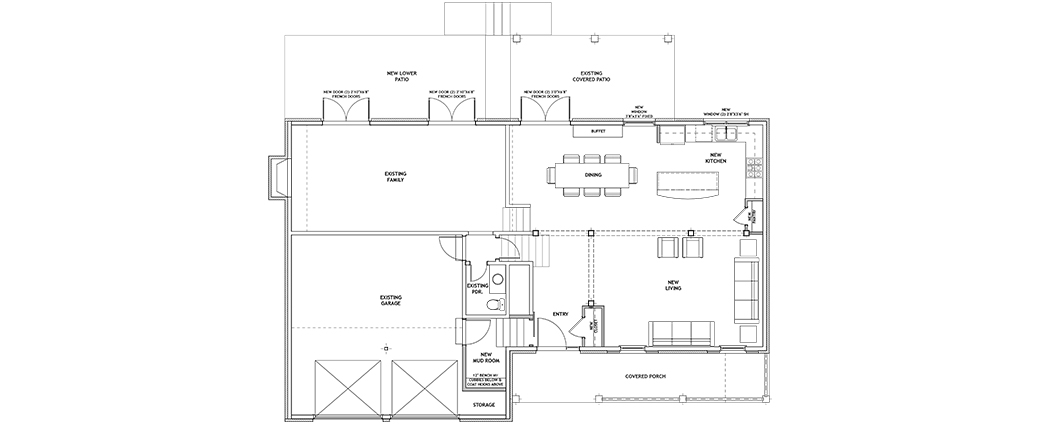 the existing living room area. Two sets of